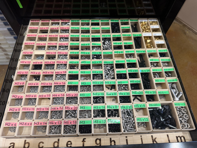 This is a drawer sample organized using a 3D printed Gridfinity base and customized swappable storage bins.